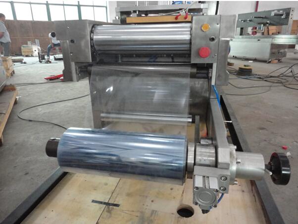 Before the operation of the equipment, take a roll of lower film and install it on the lower film frame, open the lower film, and install the lower film between the chain clips.